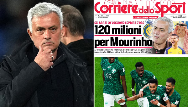 โชเซ่ มูรินโญ่ เฮดโค้ช โรม่า ลุ้นสร้างประวัติเป็นหัวหน้าผู้ฝึกสอนที่ค่าจ้างแพงสุดตลอดกาลหากตกลงรับข้อเสนอจากทีมชาติซาอุดีอาระเบียผูกมัดสองปี มูลค่า 105 ล้านปอนด์ (ราว 120 ล้านยูโร) ในเมื่ออนาคตที่สตาดิโอ โอลิมปิโก้ ก็ไร้ความชัดเจน
