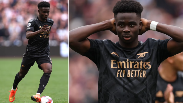 ซาก้า วัย 21 ปี พลาดจุดโทษในเกมที่ อาร์เซน่อล เสมอ เวสต์แฮม 2-2 เมื่อวันอาทิตย์ที่ผ่านมา และมีการโพสต์ทวีตไม่นานหลังจากสิ้นเสียงนกหวีดสุดท้ายว่า "ไอ้ตัวตลกนี่ทำให้เราเสียแชมป์ลีก"