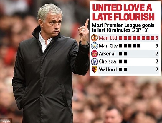 การยิงประตูในช่วง 10 นาทีท้ายของ ยูไนเต็ด ถึง 8 ลูกมากสุดในลีกตอนนี้