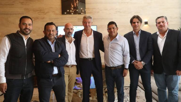มิเกล อังเคล คีล มารีน (กลาง) ซีอีโอของ แอตเลติโก มาดริด เดินทางมาทำข้อตกลงสร้างศูนย์ฝึกแห่งใหม่ของ อัตเลติโก ซาน หลุยส์ สโมสรเม็กซิโกซึ่งเป็นพันธมิตรของพวกเขา
