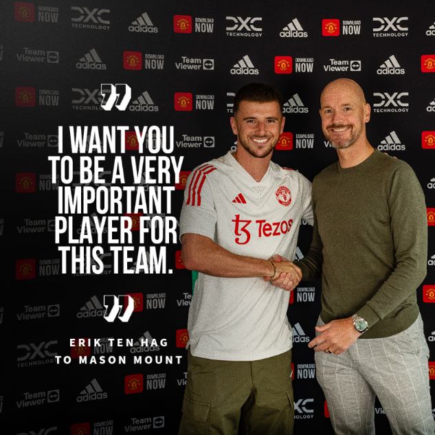 เมาท์ ย้ายจาก เชลซี มาเป็นสมาชิก’ปีศาจแดง’ มูลค่า 60 ล้านปอนด์เซ็นสัญญา 5+1 ปีออปชั่น เปิดตัวยังศูนย์ฝีกแคร์ริงตันวานนี้ พร้อมรับหมายเลข 7 อันเข้มขลังถึงขั้นผจก.ทีม เอริก เทน ฮาก ฝากฝังว่า