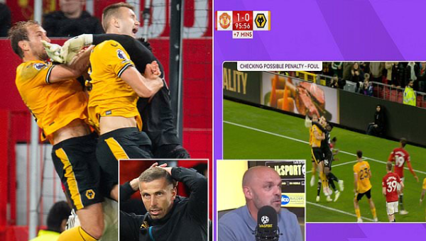 ฮูเปอร์ ผู้ตัดสินที่ 1 ปฏิเสธการให้จุดโทษแก่ วูล์ฟส์ จังหวะเหตุการณ์บนสนามเมื่อ อ็องเดร โอนาน่า โกล ยูไนเต็ด ออกมาคว้าบอลโด่งแต่วืดแล้วไปชนกับ ซาซ่า คาลายซิช ตัวสำรองทีมเยือน แล้วคงคำตัดสินหลังผู้ควบคุม ไมเคิ่ล ซาลิสบิวรี่ เช็ค’วีเออาร์’แล้ว