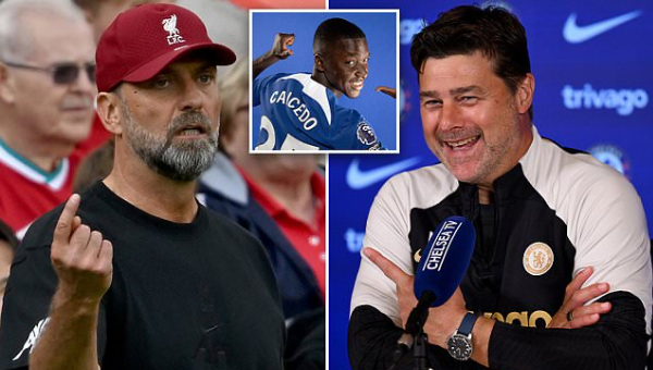 เมาริซิโอ โปเช็ตติโน่ เฮดโค้ช เชลซี หยิกแกมหยอกไปยัง เจอร์เก้น คล็อปป์ ผจก.ทีม ลิเวอร์พูล ถึงรสชาติการเป็นคนผิดคำพูดตัวเองเรื่องไม่คิดซื้อดาวเตะ 100 ล้านปอนด์ แต่ท้ายสุดก็กลืนน้ำลายเคส มอยเซส ไกเซโด้