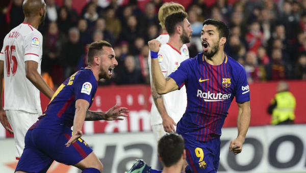 การทำสองประตูของ หลุยส์ ซัวเรซ กับ ลิโอเนล เมสซี่ ช่วยให้บาร์เซโลน่ารอดพ้นการปราชัยบนสังเวียน'ราม่อน ซานเชซ ปิซฆวน'หลังฮึดไล่ตีเสมอ เซบีย่า 2-2 เมื่อวันเสาร์ที่ผ่านมาจนยืดสถิติไม่แพ้บนเวทีลีกา 37 เกมติดต่อกันและจ่อทาบสถิติประวัติศาสตร์ในวันเสาร์หน้า