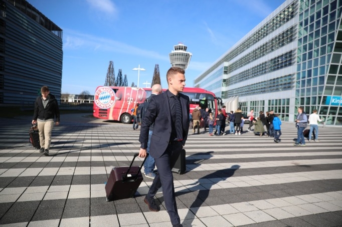ทัพนักเตะและคณะของ สโมสร บาเยิร์น มิวนิค แต่งหล่อบินลัดฟ้าสู่แคว้น อันดาลูเชีย เพื่อเตรียมเตะ ยูฟ่า ชปล.รอบก่อนรองชนะเลิศ นัดแรก พบกับ เซบีย่า ขนตัวเป้งๆที่เล่นไหวมาครบ