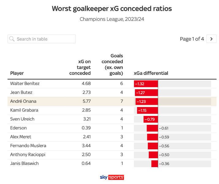 โอนาน่า ถูกปลุกปั้นจาก ‘อีทีเอช’ เต็มที่ตั้งแต่ย้ายจาก อินเตอร์ มิลาน สนนราคา 43.7 ล้านปอนด์ (ราว 50 ล้านยูโร) ส่งแข่งทุกรายการ 10 นัดแม้แต่ คาราบาว คัพ ทว่าก็เสียไปถึง 18 ลูก เก็บได้เพียงสามคลีนชีต
