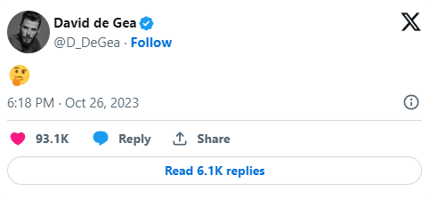 ดาบิด เด เคอา มือการเคลื่อนไหวผ่านทาง X หลังมีข่าวลือว่า แมนเชสเตอร์ ยูไนเต็ด อาจจะดึงกลับมาเฝ้าเสาในตลาดเดือนมกราคมช่วงที่ อ็องเดร โอนาน่า จะไปรับใช้ชาติทำศึก แอฟริกัน คัพ ออฟ เนชั่นส์