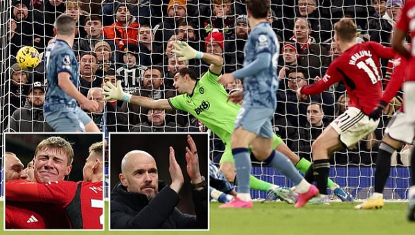 ราสมุส ฮอยลุนด์ อาจโล่งใจที่ทำประตูแรกในพรีเมียร์ลีกให้กับ แมนฯ ยูไนเต็ด เมื่อเป็นคนพังประตูชัยในเกมคัมแบ็กเอาชนะ แอสตัน วิลล่า 3-2 แต่เด็กหนุ่มเดนมาร์กปฏิเสธว่ามันไม่ใช่การยกภาระออกจากบ่าของเขา