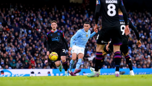 เรือใบ ที่ครองบอลบุกแทบจะฝั่งเดียวมาออกนำ 1-0 ในนาทีที่ 33 เมื่อ มาเตโอ โควาซิช จ่ายเข้าเขตโทษฝั่งซ้ายให้ ฮูเลียน อัลวาเรซ พยายามตวัดเปิดเข้ากลาง แต่ไปติดบล็อค อเล็กซ์ มาตอส เด้งมาเข้าทาง ฟิล โฟเด้น ซัดด้วยซ้ายมุมแคบส่งบอลแทยงเสียบเสาไกลเข้าไปเลย