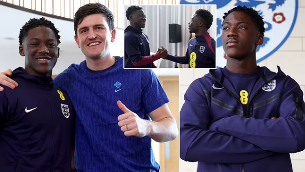 มีภาพเขาทักทายเพื่อนร่วมทีม ยูไนเต็ด อย่าง แฮร์รี่ แม็กไกวร์ และ บูคาโย่ ซาก้า ปีก อาร์เซน่อล ขณะที่ทีมเช็กอินในศูนย์ซ้อมสแตฟฟอร์ดเชียร์ ก่อนเกมทั้ง 2 นัดที่เวมบลีย์