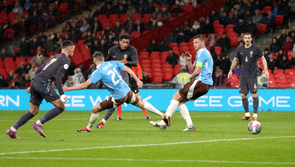 อังกฤษ ส่งบอลตุงตาข่ายได้ในนาที 26 จากเตะมุมฝั่งขวาที่ ฟิล โฟเด้น เปิดเข้าเขตโทษ ลูอิส ดังค์ โหม่งชงให้ จาร์ร็อด โบเว่น ขวิดอีกที แต่มีการเช็กวีเออาร์ก่อนผู้ตัดสินชี้ขาดใหม่ว่า โบเว่น ล้ำหน้า อังกฤษ จึงไม่ได้ประตูนำ
