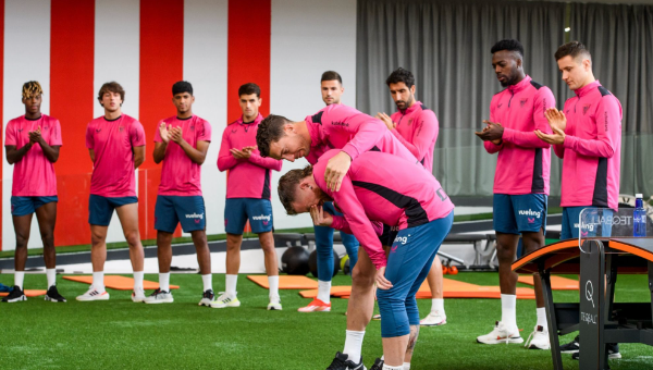 อีเกร์ มูเนียอิน ร่ำไห้ระหว่างการกล่าวคำอำลาเพื่อนร่วมทีม แอธเลติก บิลเบา เมื่อเขาจะแยกทางกับสโมสรหลังจบฤดูกาลนี้