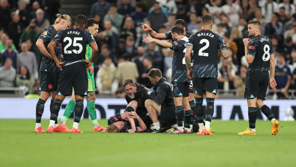 "เคดีบี" ที่แอสซิสต์ประตูแรกให้ เออร์ลิ่ง ฮาแลนด์ บาดเจ็บจากจังหวะปะทะกับ ป๊าป ซาร์ ขณะที่ เอแดร์ซอน ก็บวกกับ คริสเตียน โรเมโร่ ในจังหวะที่ สเปอร์ส ลุ้นทำประตู