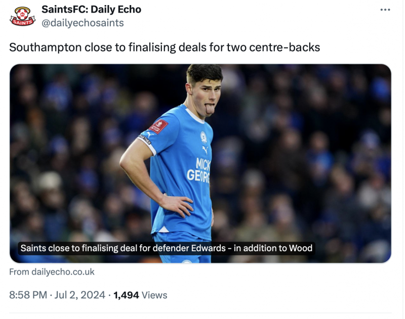 ทางเฮดโค้ช รัสเซลล์ มาร์ติน ที่เพิ่งได้สัญญาใหม่อีก 3 ปีก็อยากเสริมพลังหนุ่มในยูนิตเซนเตอร์แบ็กเพื่อผ่อนภาระให้ตัวหลัก เทย์เลอร์ แฮร์วู้ด-เบลลิส