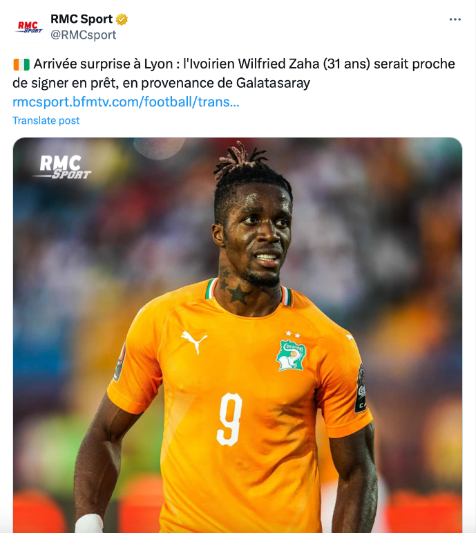 วิลฟรีด ซาฮา ปีกคนคุ้นหน้าคุ้นตาของพรีเมียร์ลีก อังกฤษ กำลังจะเปิดประสบการณ์ครั้งใหม่ของตนเองด้วยการย้ายไปค้าแข้งกับ โอลิมปิก ลียง แห่ง ลีก เอิง ฝรั่งเศส