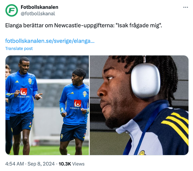 แอนโธนี่ เอลังก้า ปีกของ ฟอเรสต์ เปิดใจว่าเขามีความมืออาชีพเต็มเปี่ยมเพื่อรับใช้สังกัดปัจจุบัน แม้ทราบดีแก่ใจเรื่องตกเป็นเป้าหมายเสริมทัพของ นิวคาสเซิ่ล ทั้งทีมเมตสวีเดน อเล็กซานเดอร์ อีซัค ก็เอาแต่เล่าเรื่องดีๆที่เซนต์.เจมส์ พาร์ค ให้ฟัง