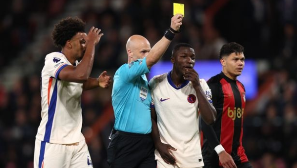 เกมระหว่าง บอร์นมัธ กับ เชลซี ในศึก พรีเมียร์ลีก อังกฤษ วันเสาร์ที่ผ่านมาสรางสถิติใหม่ด้วยการมีใบเหลืองในเกมมากที่สุด