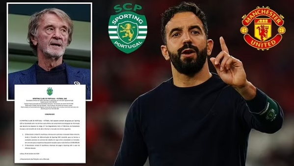 แถลงการณ์จากสโมสรโปรตุเกสระบุว่า "1.สโมสรฟุตบอล แมนเชสเตอร์ ยูไนเต็ด แสดงความสนใจที่จะจ้างโค้ช รูเบน อาโมริม โดยคณะกรรมการบริหารของ สปอร์ติ้ง เอสเอดี อ้างถึงข้อกำหนดและเงื่อนไขที่ระบุไว้ในสัญญาจ้างที่มีผลบังคับใช้ระหว่างบริษัทและโค้ชโดยเฉพาะสำหรับเงื่อนไขการเลิกจ้างที่เกี่ยวข้องและจำนวนเงิน 10,0000,000 ยูโร"