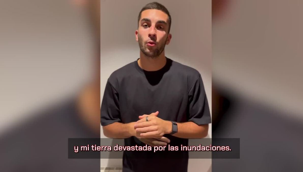 เฟร์ราน ตอร์เรส แนวรุก บาร์เซโลน่า โพสต์คลิปวิดีโอส่งกำลังใจและสนับสนุนชาวบาเลนเซียที่เผชิญภัยพิบัติครั้งใหญ่จากพิษพายุดานาจนน้ำท่วมหนักและมีผู้เสียชีวิตแล้วตอนนี้ 150 ราย ตามรายงานจากมุนโด้เดปอร์ติโบเมื่อวันพฤหัสฯที่ผ่านมา