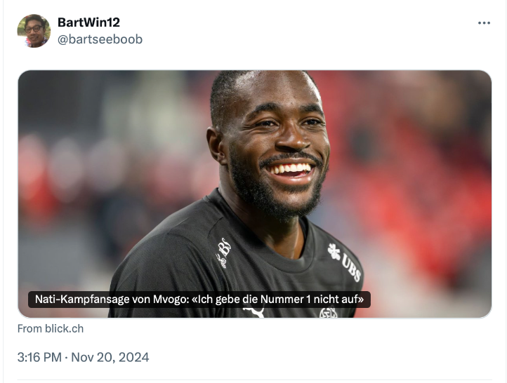 โกลวัย 30 ปีเล่นไป 13 เกมลีก เดอซ์ เก็บได้ 3 คลีนชีต, เสีย 15 ประตู สถานการณ์บนตารางคือรองจ่าฝูง ส่วนนามทีมชาติสวิตเซอร์แลนด์ เพิ่งลงตัวจริงส่งท้าย ยูฟ่า เนชั่นส์ ลีก แพ้ สเปน 2-3