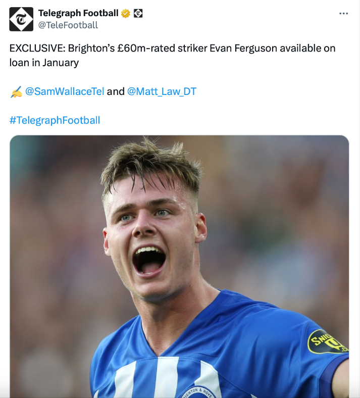 เอแวน เฟอร์กูสัน กองหน้าหนุ่ม ไบรท์ตัน กำลังจะเผชิญความท้าทายในอาชีพจากดาวรุ่งเนื้อหอมสู่แข้งที่ต้องหาโอกาสพิสูจน์ตัวเองที่อื่นแบบยืมใช้งาน