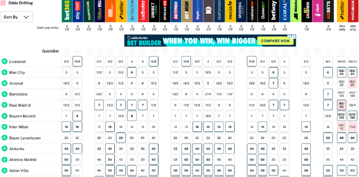 วิลเลี่ยม ฮิลล์ บ่อนรับพนันทรงอิทธิพลของอังกฤษ เป็นแกนนำปรับอัตราต่อ-รองแชมป์แชมเปี้ยนส์ ลีก ฤดูกาล 2024-25 ใหม่ โดยยกให้ ลิเวอร์พูล แซง แมนฯ ซิตี้ เป็นเต็ง 1 เรตที่ 9/2 (แทง 2 จ่าย 9 ไม่รวมทุน)