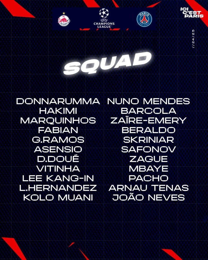 สำหรับเกมเยือน ซัลซ์บวร์ก วันอังคารนี้ เปแอสเช จะพลาดใช้งาน อุสมัน เดมเบเล่ แต่ช่วงหลังแนวรุกทีมชาติฝรั่งเศสกลายเป็นเพียงตัวสำรองท่ามกลางกระแสขาวไม่ลงรอยกับเทรนเนอร์ใหญ่