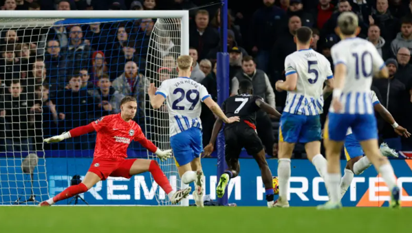 ไบรท์ตัน ตีไข่แตกไล่มา 1-3 ในนาทีที่ 87 จากลูกเตะมุมบอลชุลมุนก่อนที่ ลาครัวซ์ จะเตะไปอัด มาร์ค เกฮี เด้งเข้าประตูตัวเองไปซะงั้น