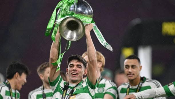 อเล็กซ์ บาเย่ ร่วมฉลองความสำเร็จแรกในฐานะนักเตะ เซลติก หลังการคว้าแชมป์ สกอตติช ลีก คัพ