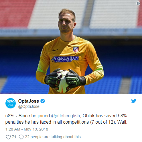 ดีเอโก้ ซิเมโอเน่ เทรนเนอร์แอตเลติโก มาดริด กระตุ้นให้ ยาน โอบลัค นายทวารของทีมอยู่ค้าแข้งในถิ่นกัลเดร่อนต่อไปในฤดูกาลหน้า