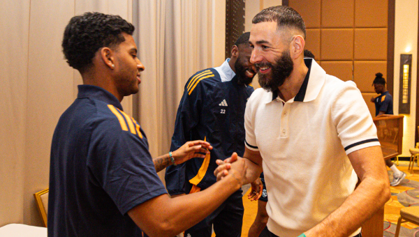 คาริม เบนเซม่า เดินทางมาเยี่ยมเยียนเพื่อนเก่าที่ เรอัล มาดริด ระหว่างทีมชุดขาวเดินทางมาทำศึก ซูเปอร์ คัพ ที่เมืองเจดดาห์ ประเทศซาอุดิอาระเบีย