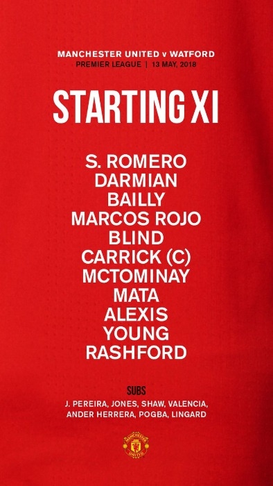 อเล็กซิส ซานเชซ กับ สกอตต์ แม็คโทมีเนย์ คือ 2 นักเตะที่มีชื่อเป็นตัวจริงต่อ นอกนั้นเป็นโอกาสของ เซร์คิโอ โมเรโร่, มัตเตโอ ดาร์เมียน, เอริค ไบยี่, มาร์กอส โรโฮ, ดาเล่ย์ บลินด์, แอชลี่ย์ ยัง, ฆวน มาต้า, มาร์คัส แรชฟอร์ด และนัดสุดท้ายของ ไมเคิ่ล คาร์ริค ที่สวมปลอกแขนกัปตันทีม