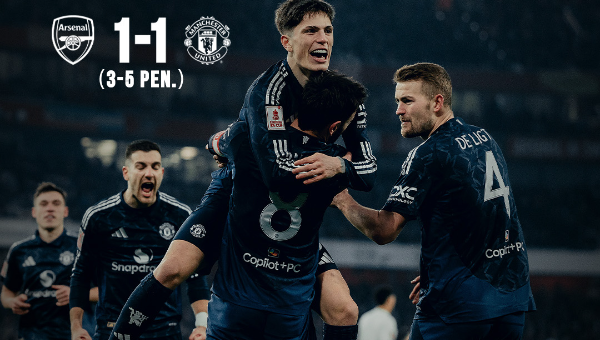แมนเชสเตอร์ ยูไนเต็ด โชว์ลูกฮึดดวลจุดโทษชนะ อาร์เซน่อล หลังในเวลา 120 นาทีเสมอกันไป 1-1 ในเกมที่ผีแดงต้องเล่นเพียง 10 คนตั้งแต่นาที 61 หลัง ดีโอโก้ ดาโลต์ ได้ใบแดง