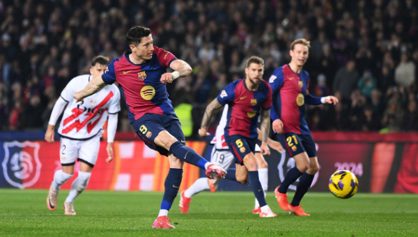 บาร์เซโลน่า ขึ้นนำจ่าฝูงได้สำเร็จ แม้เปิดรังเฉือนชนะ ราโย บาเยกาโน่ ได้เพียง 1-0 จากจุดโทษของ โรเบิร์ต เลวานดอฟสกี้