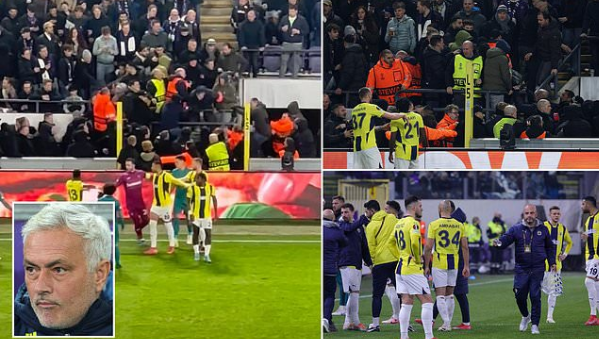 เกมยูโรปา ลีก ระหว่างเฟเนร์บาห์เช่กับอันเดอร์เลชท์ถูกระงับลงชั่วคราว ท่ามกลางการทะเลาะวิวาทบนอัฒจันทร์ ขณะที่ทีมของ โชเซ่ มูรินโญ่ กลับห้องแต่งตัว