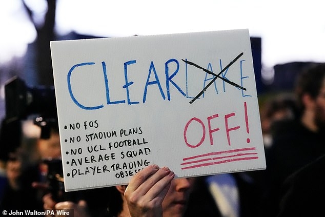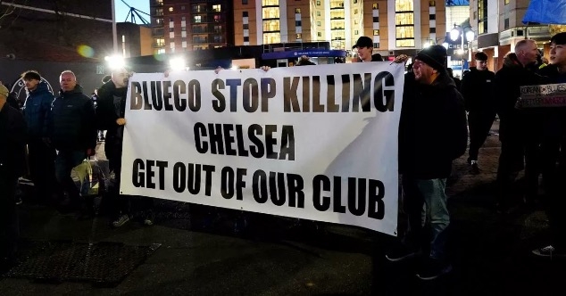 นำสู่การรวมพลนับ 100 ชีวิต ประท้วงหน้าสนามสแตมฟอร์ด บริดจ์ ก่อนเกมไล่ยำ เซาธ์แฮมป์ตัน 4-0 วานนี้ เพื่อกดดันกลุ่มเจ้าของทีมโดยชูป้ายข้อความทำนอง