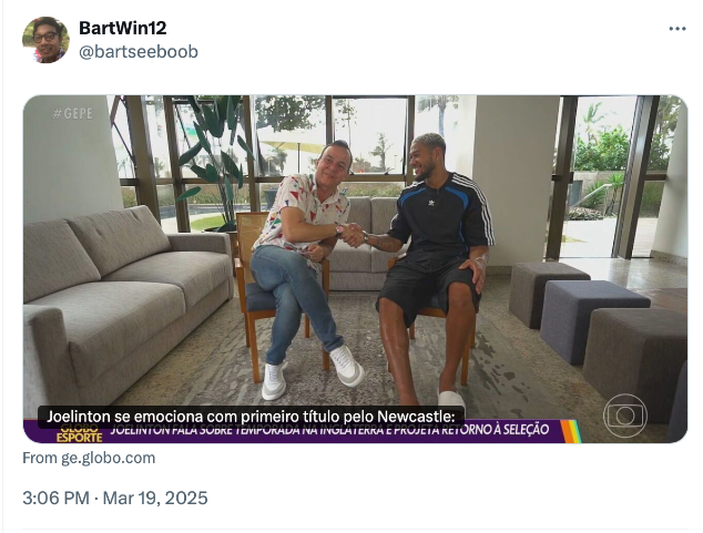 แข้งวัย 28 ปีเวลานี้มารับใช้ทีมชาติบราซิลรอเตะ เวิลด์ คัพ 2026 รอบคัดเลือก โซนกอนเมโบล พบ โคลอมเบีย และ อาร์เจนตินา เดือนนี้