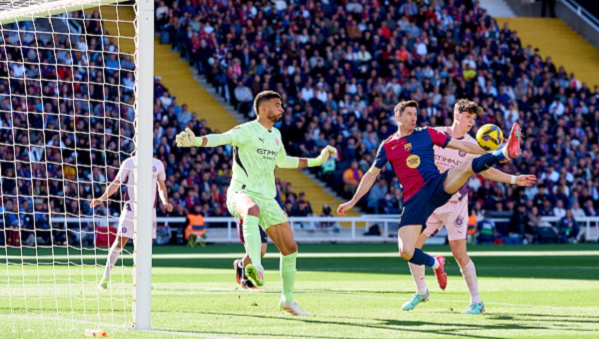 บาร์ซ่า หนีห่าง 3-1 ในนาทีที่ 77 จากจังหวะสวนกลับ เฟรงกี้ เดอ ย็อง ลากจี้ขึ้นมาแล้วไหลเข้าเขตโทษด้านซ้ายให้ เลวานดอฟสกี้ จับแล้วแต่งเข้าขวาก่อนซัดเข้าประตูไป
