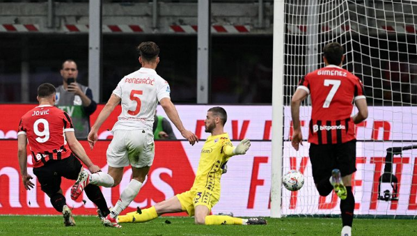 แต่ 2 นาทีถัดมา มิลานตีเสมอ 2-2 สำเร็จ โทโมรี่ แทงบอลขึ้นหน้า แนวรับทีมเยือนหยุดชะงัก ทำให้ ลูก้า โยวิช ที่วิ่งสอดขึ้นมา หลุดเดี่ยวเข้าไปแปเรียดเสาแรกเบียดขา เด เคอา ตุงตาข่าย