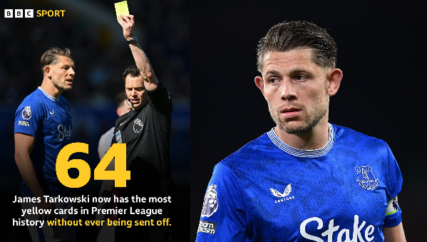 เจมส์ ทาร์คอฟสกี้ สร้างประวัติศาสตร์เป็นผู้เล่นพรีเมียร์ลีกที่โดนใบเหลืองมากที่สุด โดยปราศจากใบแดง หลังเกมกับอาร์เซน่อล เมื่อวันเสาร์