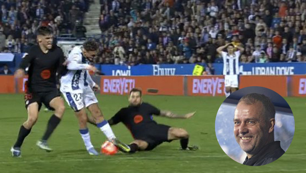 ฮันซี่ ฟลิค กุนซือบาร์เซโลน่า แสดงความยินดีกับการเข้าสกัดอันเหลือเชื่อของ อีนญีโก้ มาร์ติเนซ ในช่วงทดเวลาบาดเจ็บราวกับเป็นประตู ในเกมที่บาร์ซ่าบุกเฉือนเลกาเนส 1-0 เมื่อวันเสาร์