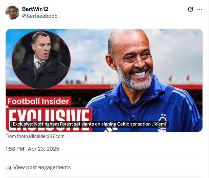สโมสร น็อตติ้งแฮม ฟอเรสต์ ตกเป็นข่าวแสดงความสนใจ ดาร่า จิเคมี่ ของ เซลติก เอฟซี เพราะเชื่อในการวิเคราะห์ของแมวมองว่ากองหลังรายนี้มีศักยภาพ