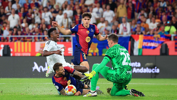 จังหวะดังกล่าว วินิซิอุส ลุกขึ้นจากจังหวะเข้าปะทะอย่างหนักกับ ฌูลส์ กุนเด้ ก่อนขอเปลี่ยนตัวทันที
