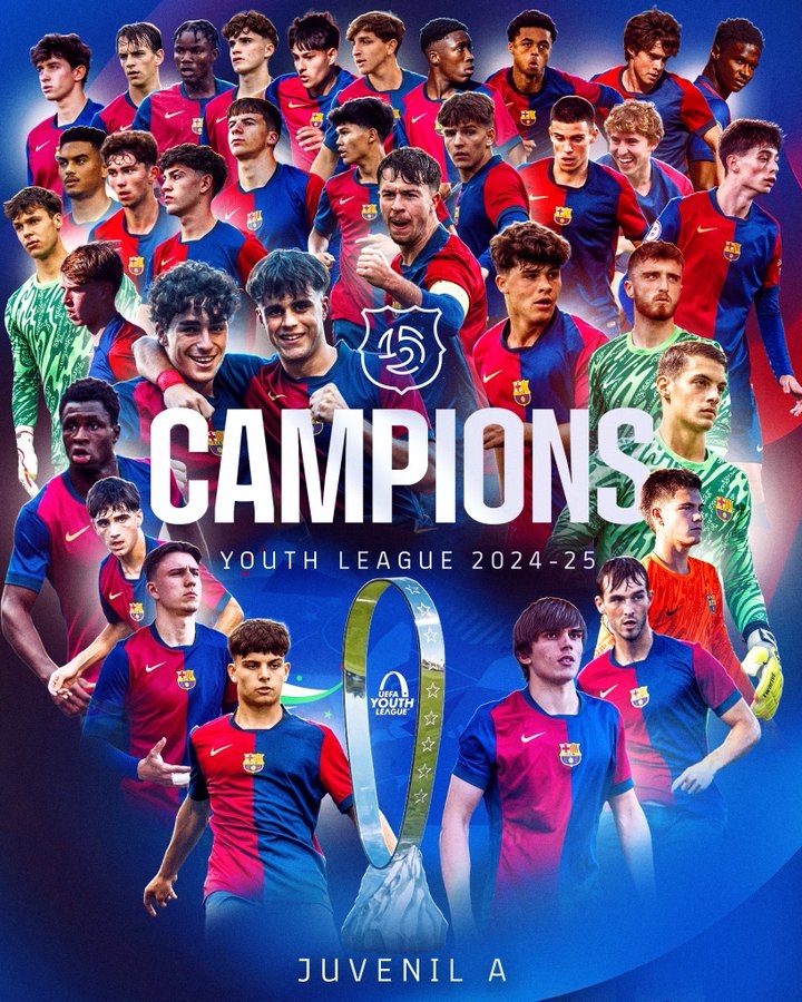 บาร์เซโลน่าชุดยู-19 ปี ภายใต้การกุมบังเหียนของ ชูเลียโน่ เบลเล็ตติ ผงาดคว้าแชมป์ยูฟ่า ยูธ ลีก ซีซั่น 2024-2025 หลังการยิงสลุต แทร็บซอนสปอร์ 4-1 ในนัดชิงชนะเลิศที่เมืองนียงส์ ประเทศสวิตเซอร์แลนด์ เมื่อวันจันทร์ ตามรายงานจาก 'เดียรีโอ สปอร์ต'