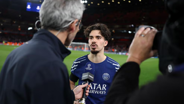 วิตินญ่า แฟร์เรยร่า กองกลาง ปารีส แซงต์-แชร์กแมง เจ้าของตำแหน่งผู้เล่นที่ดีสุดของเกมปราบ อาร์เซน่อล 1-0 รอบรองฯ ชปล. นัดแรก วานนี้ อุทิศโทรฟี่ดังกล่าวแก่ทีมเมต จานลุยจิ ดอนนารุมม่า ในห้องแต่งตัวเพราะมองโกลอิตาเลี่ยนคู่ควรกว่า