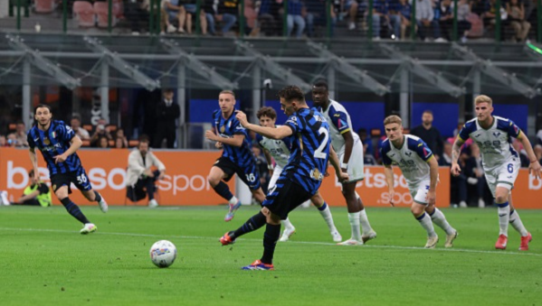 อินเตอร์ มิลาน รักษาระยะห่างจาก นาโปลี ทีมจ่าฝูงเหลือ 3 คะแนนเท่าเดิม หลังเปิดบ้านเฉือนชนะ เฮลลาส เวโรน่า 1-0 จากประตูชัยจุดโทษช่วงต้นเกมของ คริสเตียน อัสลานี่