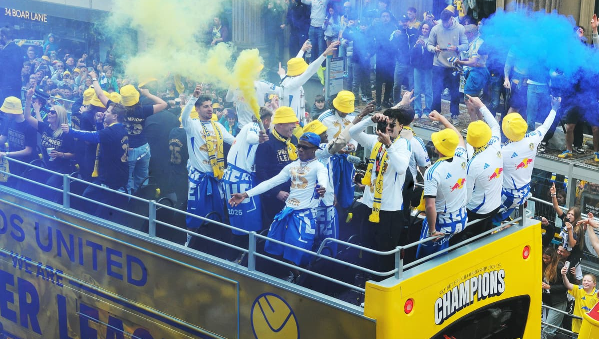 สภาเมืองลีดส์ประมาณการเบื้องต้นว่า มีแฟนบอลมารวมตัวกัน 150,000 คน หลังชัยชนะในวันเสาร์ที่พลีมัธ เกมสุดท้ายของฤดูกาล ทำให้พวกเขาเฉือนเบิร์นลี่ย์ น้องใหม่ที่เพิ่งเลื่อนชั้น และคว้าแชมป์ลีกรองเมืองผู้ดีสำเร็จ
