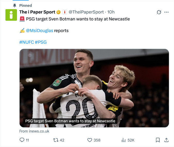 สเวน บ็อตมัน กองหลัง นิวคาสเซิ่ล แสดงความภักดีต่อต้นสังกัดพร้อมล่มหัวจมท้ายกันต่อไป แม้ได้รับความสนใจจาก ปารีส แซงต์-แชร์กแมง ยักษ์ใหญ่ ลีก เอิง ฝรั่งเศส