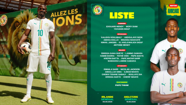 เซเนกัล มีคิวลงเล่นเกมกระชับมิตรพบ ไอร์แลนด์ ที่ดับลิน ในวันศุกร์ที่ 6 มิถุนายน ต่อด้วยพบ อังกฤษ ที่น็อตติ้งแฮม วันอังคารที่ 10 มิถุนายน