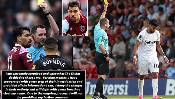 ดาวเตะเวสต์แฮมชาวบราซิเลียนถูกตั้งข้อหาล็อคผลบอล 4 กระทง และขัดขวางการสอบสวนของสมาคมฟุตบอลอังกฤษ (เอฟเอ) 2 กระทง